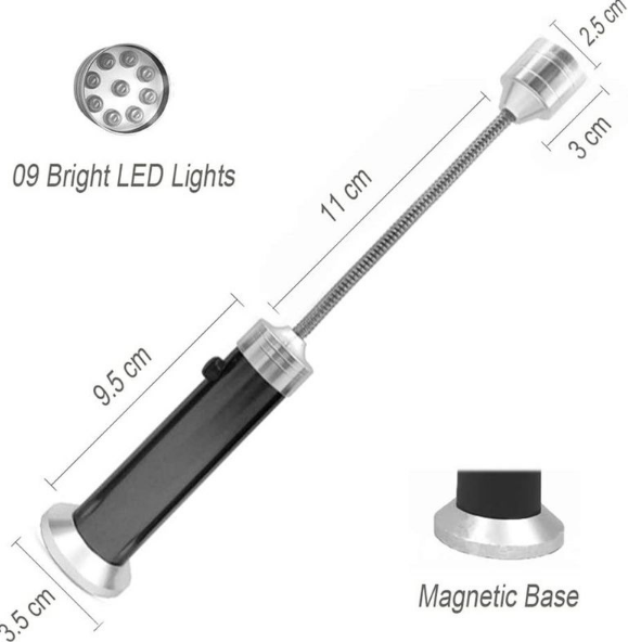 2 Pack 9-LED Grill BBQ Light Multi-function Flexible Magnetic Base Lamp