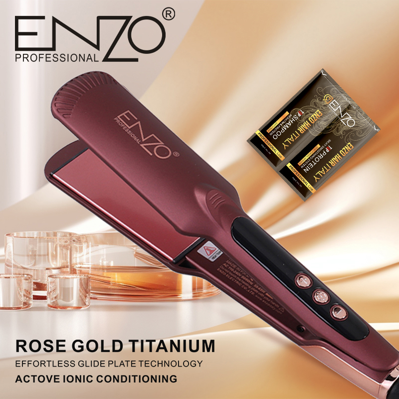 The ENZO EN-20173 hair straightener helps you easily create smooth, straight hair. This professional-grade styling tool allows for quick and precise styling. It features adjustable temperature settings, giving you complete control over the temperature while minimizing heat damage. Whether for everyday styling or touch-ups on the go, it lets you enjoy salon-quality results at home.