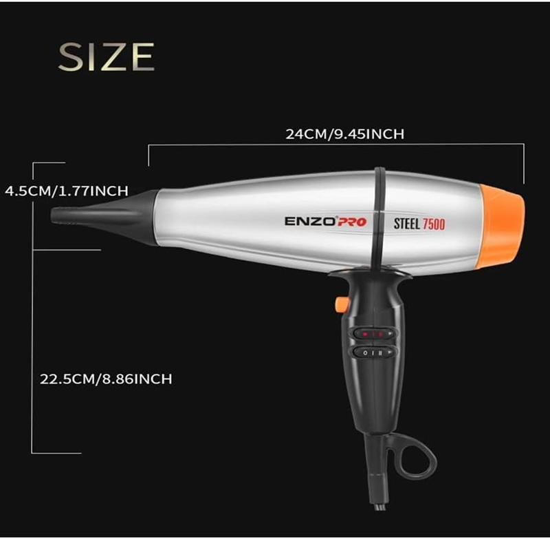 Enzo EN-6001, Professional 7500W High-Speed Hair Dryer with Four Adjustable Speeds