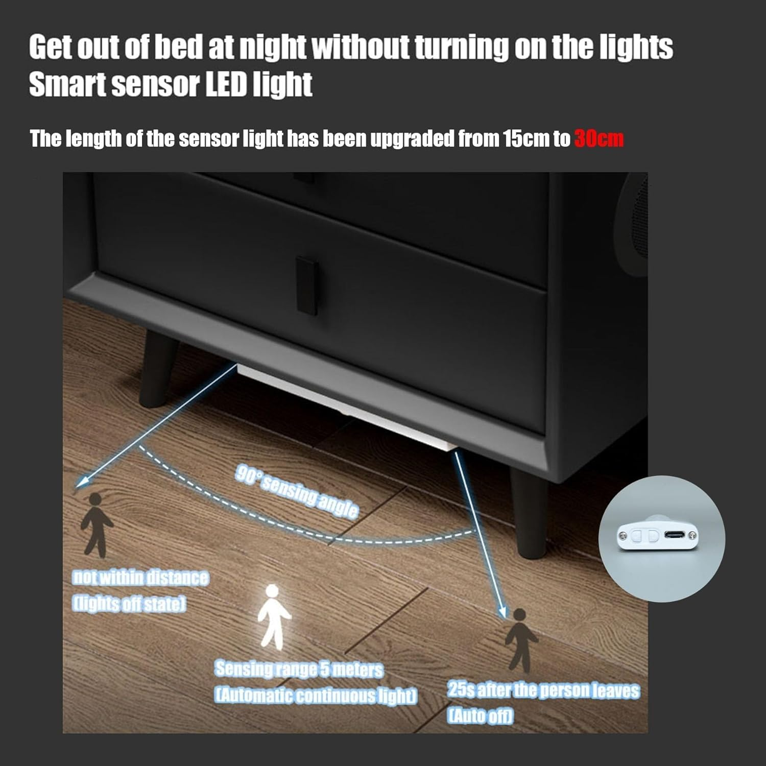 LED Nightstand and Night Induction LED Light: The length of the induction light has been increased from 15 cm to 30 cm. Three-color LED (warm color/cold color/natural color). The light effect can be adjusted by touching the touch switch. It is also equipped with a smart induction LED light. No need to turn on the light when you get up at night. The light will automatically turn on when you pass by.