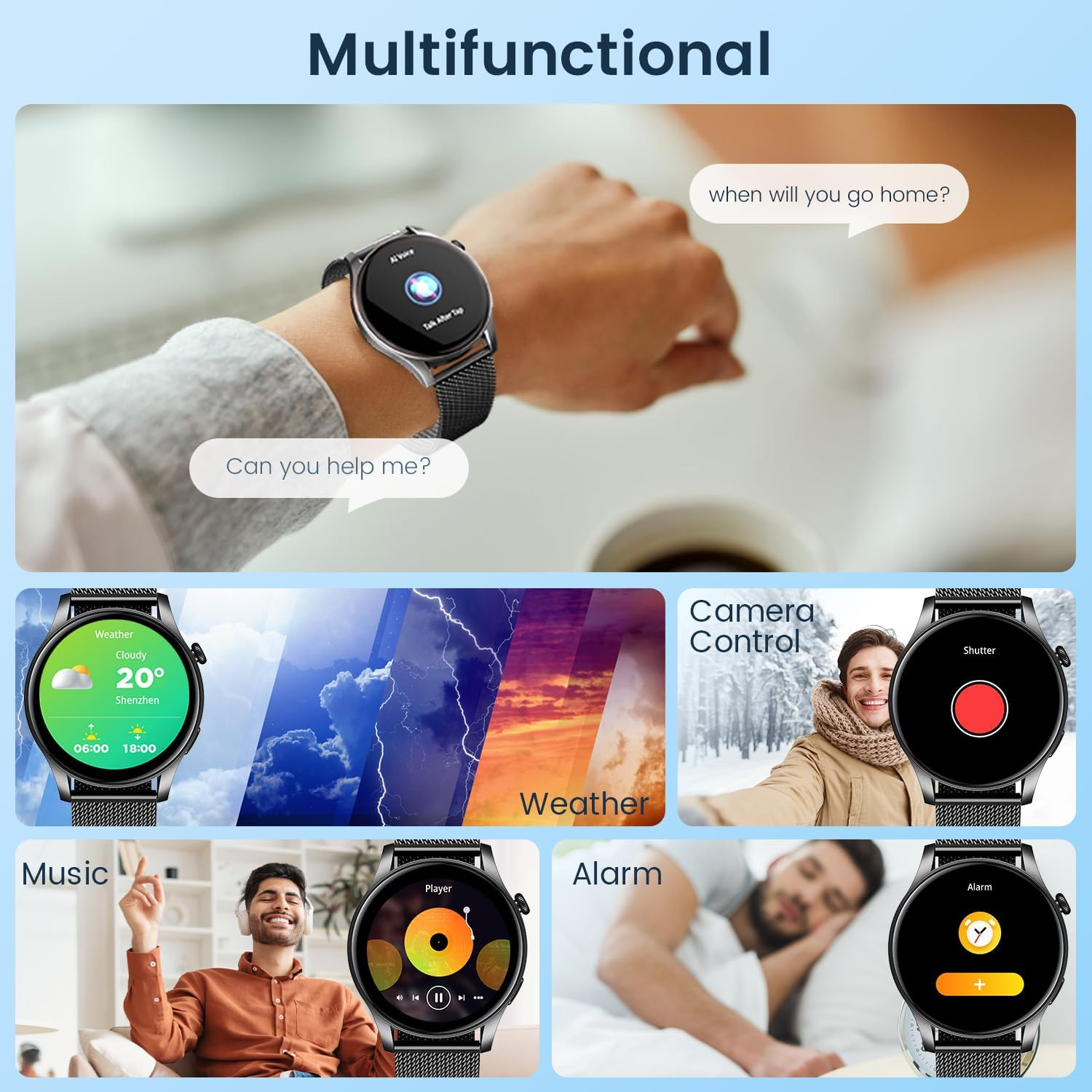 ⌚More useful functions: calculator, weather synchronization, music playback, remote camera, etc.