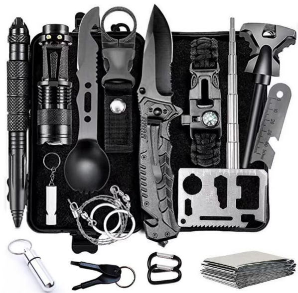 Tactical Survival Multi-Function Kit,16 in 1 Black