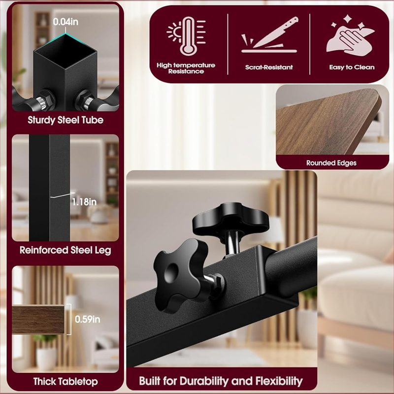 Versatile: This side table's versatility simplifies your life. It can be used as a convenient food or drink tray, a handy snack side table, a reliable coffee cup holder, a stylish wine table, and a bathtub tray, allowing you to enjoy the comfort of your sofa while still enjoying the flexibility and convenience of a dining table tray.