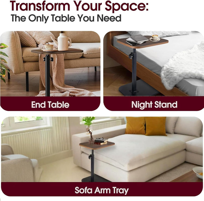 TOXIYA Coffee Side Table C Shape Adjustable, 360 Rotating Top Side Table