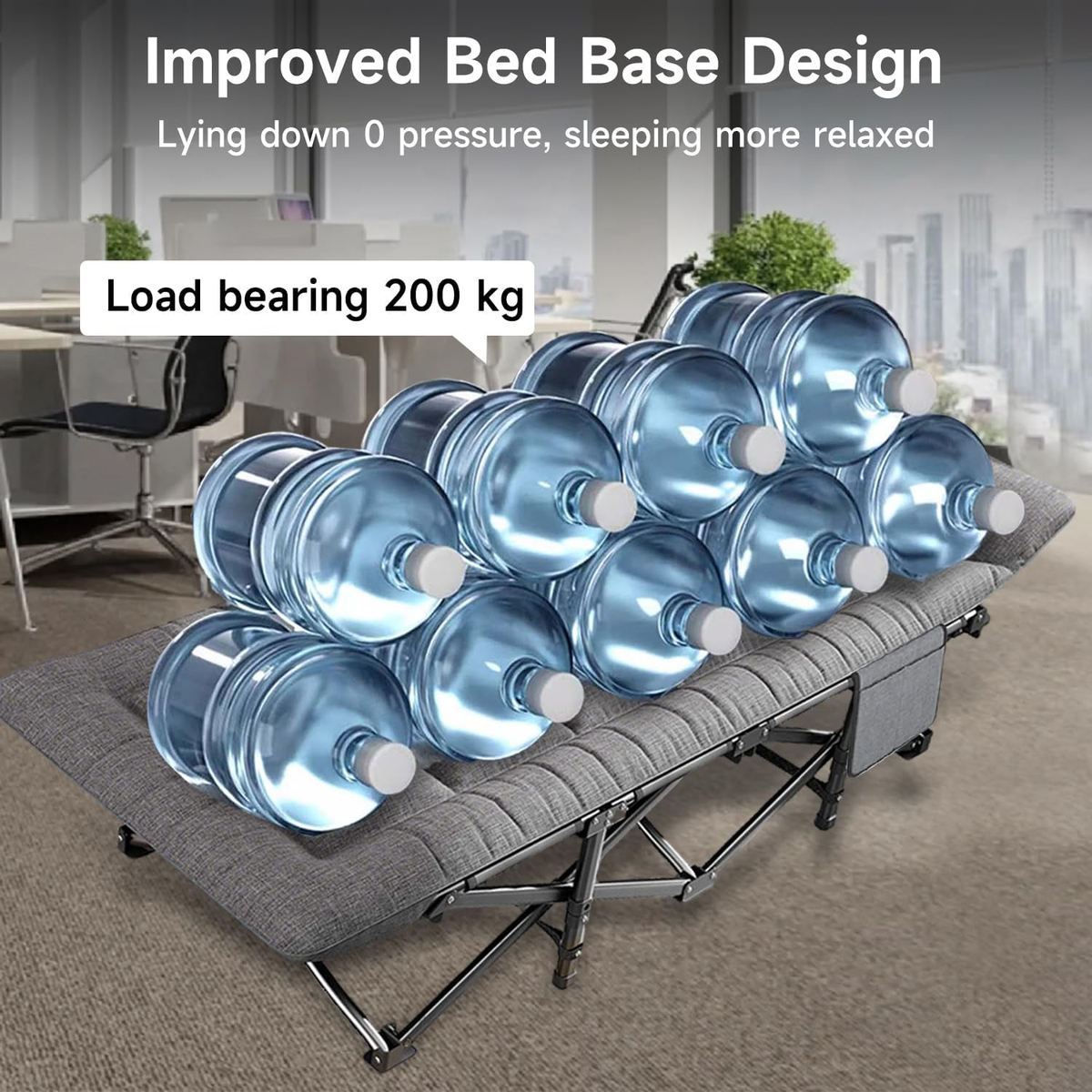 Extremely robust and durable: This camping bed is extremely durable, featuring a sturdy frame made of 25mm thick steel tubing and 10 enlarged non-slip feet to ensure optimal stability and safety on a variety of surfaces.