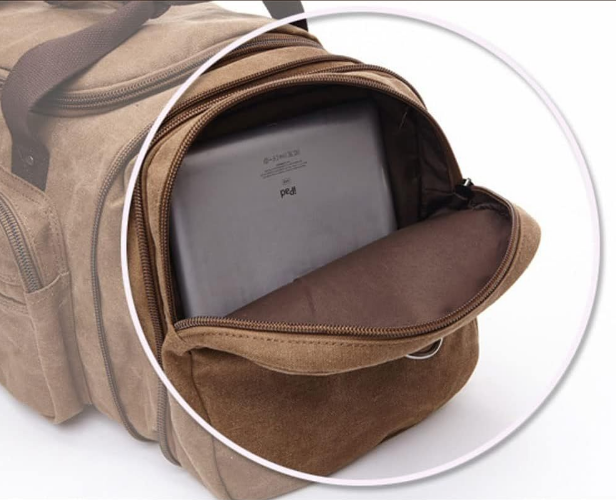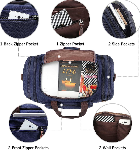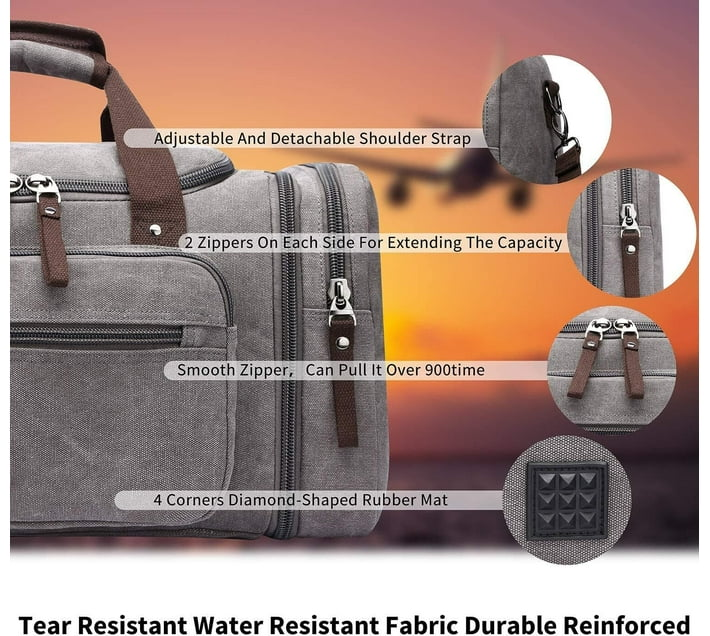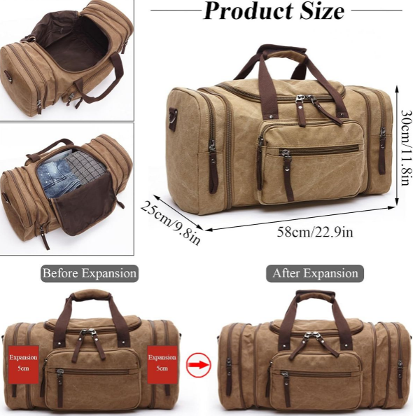 - The canvas material ensures durability, capable of withstanding the rigors of travel and everyday use. Reinforced stitching and sturdy handles or straps contribute to the bag's overall robustness, ensuring longevity even when subjected to frequent handling.