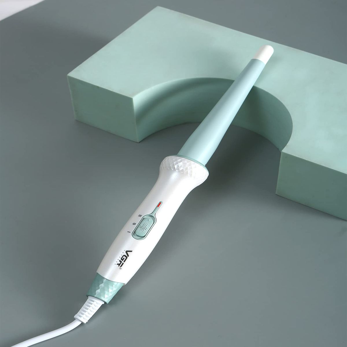 VGR Presenting to you all the new unique features & technical design of VGR Professional Curling Wand. So, just say YES to beautiful-looking curls with the new VGR V-596 Professional Curling Wand. The length of the barrel is 5.5 inches, width is 2.0-3.5 inches tapered ceramic coated barrel ensures a smooth curling experience, minimizing the chances of hair damage. The curler comes with a cool tip attached next to the ceramic coating barrel tip, a stretching swivel cord & 195 cm long socket cable for your convenient usage. It also features an ON/OFF switch with 2 temperature settings (ll-0-l), a power indicator light, and very quick heat-up technology that makes your curling experience effortless.